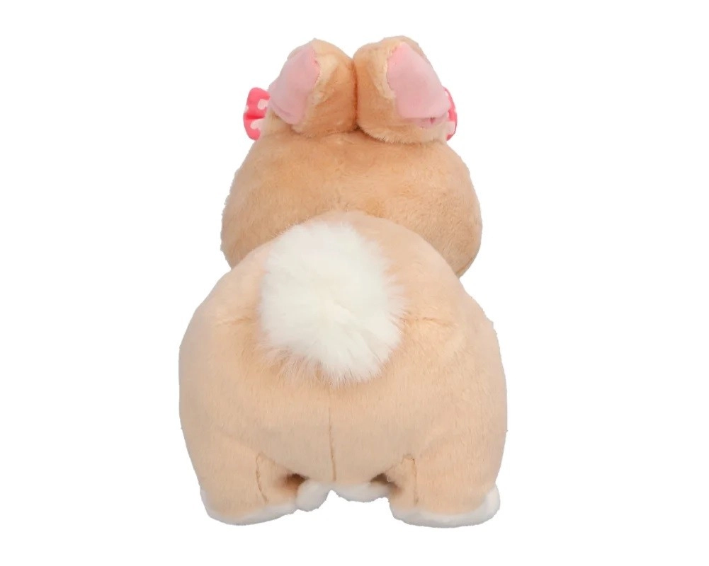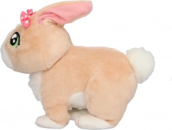 De zachte beige vacht, grote groene ogen en het roze strikje maken van het konijntje de ideale knuffel- en speelkameraad.