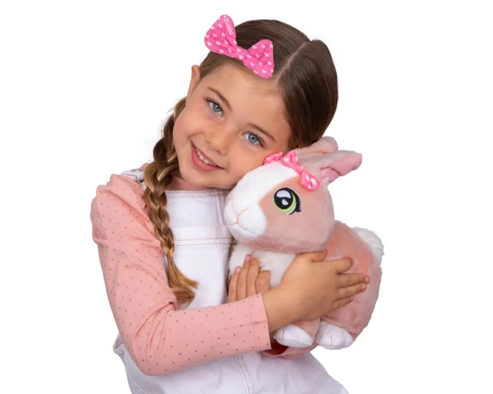 Het schattige interactieve konijntje Tusia is een zacht pluche speelgoed voor kinderen vanaf 18 maanden, dat bij aaien springt, zijn oortjes beweegt en vriendelijke geluiden maakt. Inclusief een roze strikje dat ook als haarelastiek gebruikt kan worden – het ideale cadeau voor kleine dierenvrienden.