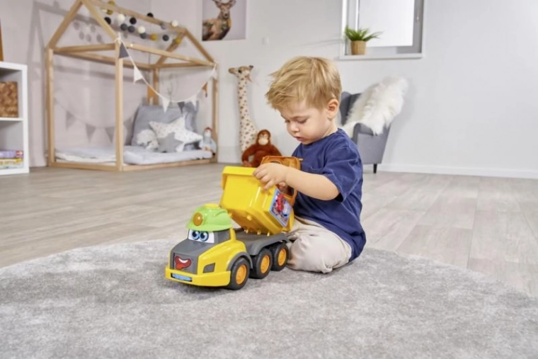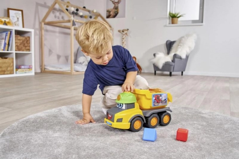 Handen aan het werk! – met het vrachtwagentje Harry beleef je realistische geluidseffecten en kun je spelen met de vormenstoof en andere speelelementen.