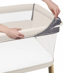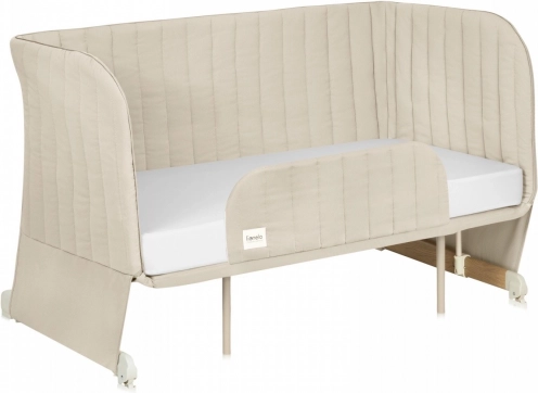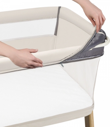 De bekleding van het bedje (beide sets) is gemaakt van hoogwaardige, sterke stof. Stijlvolle biezen en stiksels geven het bedje een subtiele elegantie.