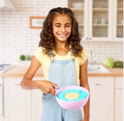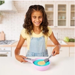 Ontdek leuk koken met het magische pannetje van Cookeez Makery! Maak het “deeg”, druk op de knop op het handvat en bij het “flippen” verschijnt er in de pan een geurige pluchen pannenkoek. Er wacht een zoete verrassing – een van de 3 verschillende mascottes die heerlijk ruiken en bij indrukken grappige geluiden maken. Batterijen zijn bijgesloten en de pret is keer op keer te herhalen.