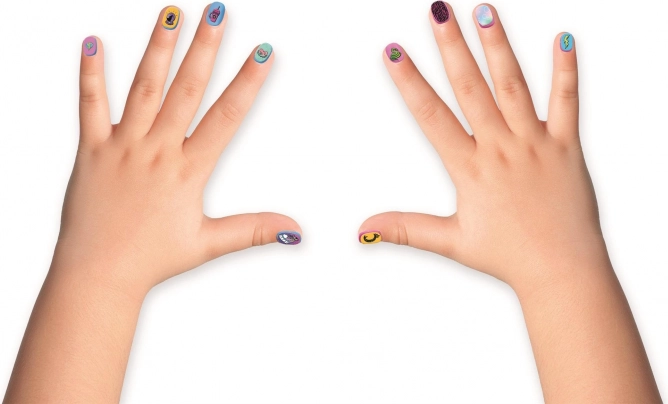 De set bevat instructies, kunstnagels en stickers – alles wat kinderen nodig hebben voor creatieve decoratie thuis en onderweg.