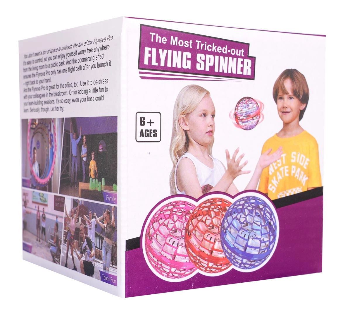 Tijdens de vlucht licht de bal op met gekleurde LED’s, wat zorgt voor een spectaculair effect overdag en in het schemer. De vliegrichting kan worden aangepast aan de manier van gooien: stuur hem als een boemerang terug naar jezelf of laat hem recht vooruit vliegen. Voeding via de geïntegreerde 3,7 V-accu, opladen via USB.