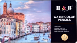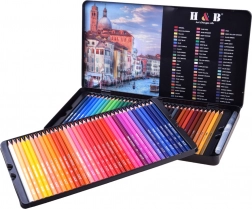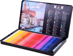 Set van aquarelpotloden in metalen doos, 72 kleuren