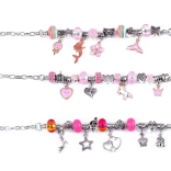 De set bevat alles wat nodig is voor het maken van mooie armbanden en kettingen: verschillende kralen, hangers en koorden.