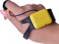 De zwarte en gele bedieningsband maakt eenvoudige besturing van de drone mogelijk via gebaren.