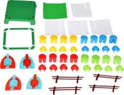 - 16 gekleurde schaapjes, 4 lanceerders, kunststof omheining, handleiding (EN)