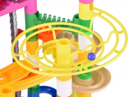 Maak kleurrijke constructies van buizen, bochten, spiralen en steunen en kijk hoe de knikkers over de hellingen razen. Dankzij de elektrische lift keren de knikkers automatisch terug naar de start en gaat het speelplezier ononderbroken door. Stevige kunststof onderdelen in levendige kleuren zijn ontworpen voor eenvoudig koppelen en een stabiele constructie.