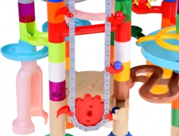 Buizen, bochten, spiralen, hellingen en steunen maken het mogelijk om eenvoudige en complexe banen te ontwerpen. De variatie stimuleert creativiteit en logisch denken.