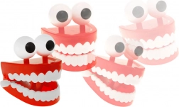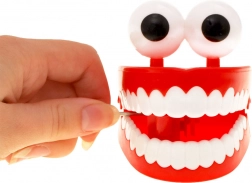 Dit plastic speeltje met een opwindbaar veermechanisme komt in beweging nadat je het sleuteltje draait en laat de tanden ritmisch klapperen. Het vrolijke design met grote cartoonogen tovert een glimlach op ieders gezicht en zorgt voor vermaak thuis, op school en op kantoor.