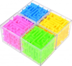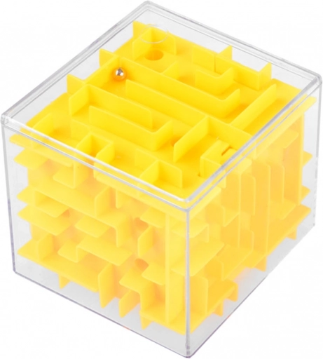 De draaiende 3D-labyrintkubus is een geweldige keuze tegen verveling voor kinderen en volwassenen. In het transparante en duurzame kunststof zitten talloze bochtige gangetjes waarin je met vaardige handbewegingen de metalen kogel van start naar finish leidt. Het spel heeft geen vast einde – de kogel die door het ene gat binnenkomt, komt door een ander naar buiten, waardoor het plezier nooit ophoudt.