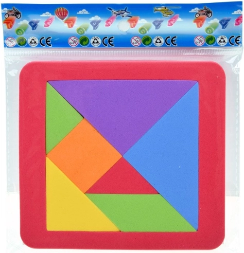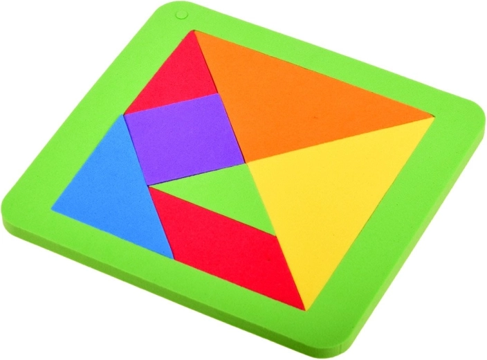 Deze klassieke tangram in een modern foam jasje biedt uren slimme speelpret. Met acht onderdelen inclusief frame kun je tientallen silhouetten en afbeeldingen leggen – volgens voorbeelden of je eigen creativiteit. Het zachte materiaal voelt prettig aan en is veilig voor kinderen.