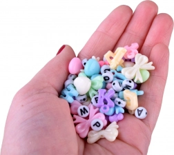 - Groot aanbod aan vormen en kleuren – letters, hartjes, bloemetjes, strikjes en meerkleurige kralen.