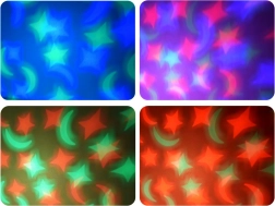 De geïntegreerde projector tovert door de kamer gekleurde sterren en een maan in tinten rood, roze, groen, oranje en blauw – ideaal voor het avondritueel.