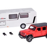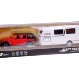 Terreinwagen met caravan met licht en geluid 1:32 – rood
