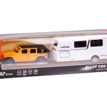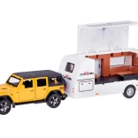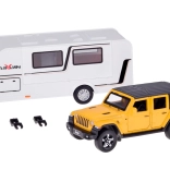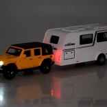 Terreinwagen met caravan met licht en geluid 1:32 - geel