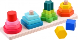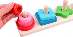Vier staafjes met verschillende vormen stimuleren kinderen om kleuren en vormen te herkennen en te sorteren, waarmee ze hun visuele waarneming en logisch inzicht ontwikkelen.