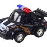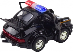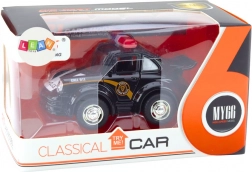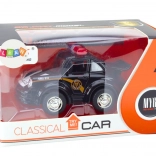 Deze elegante zwarte politiewagen in schaal 1:38 wordt gewaardeerd door elke liefhebber van autoklassiekers. Hij is uitgerust met een vliegwielaandrijving, waarmee hij snel vooruit kan rijden nadat je hem naar achteren trekt.