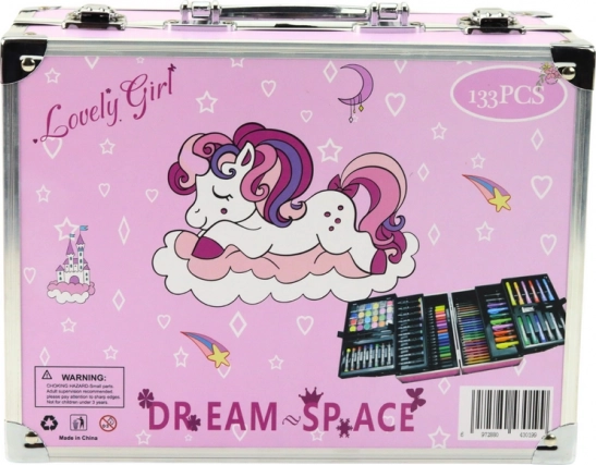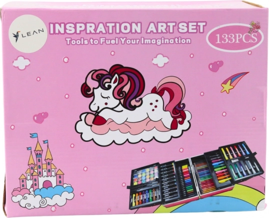 Kunstset in uitbreidbare koffer met eenhoorn 133 stuks