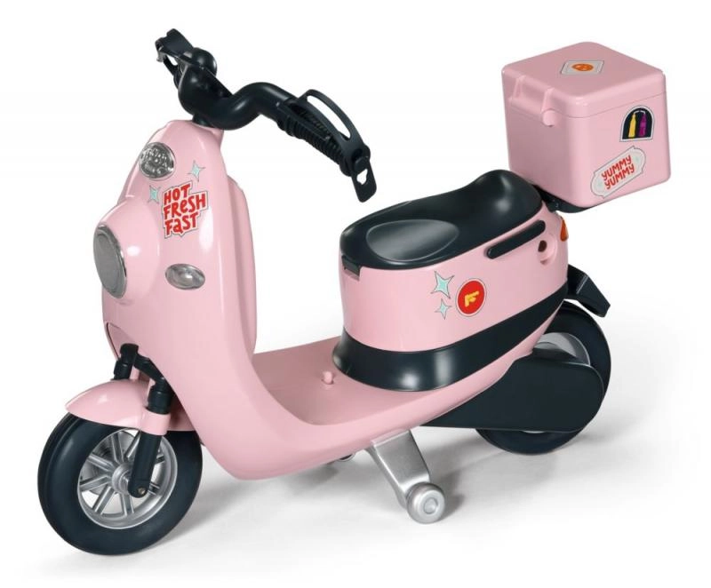 De set bevat een laadstation voor rollenspel rond energie “bijtanken” – bij aansluiting gaat het achterlicht branden (het betreft geen echt opladen). De achterste opbergbox biedt ruimte voor kleine “bezorgingen”, stickers maken de look van de scooter af en stabiliserende wieltjes zorgen voor comfortabel rijden tijdens het spelen.