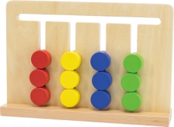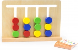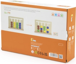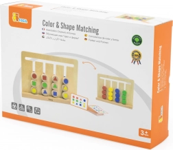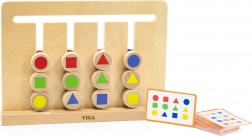 Houten logisch spel van VIGA leert kinderen vanaf 3 jaar kleuren en vormen herkennen, stappen plannen en zich concentreren. Op 4 banen schuiven kinderen 12 dubbelzijdige blokjes volgens 16 dubbelzijdige kaarten. Twee moeilijkheidsgraden (kleuren → vormen) zorgen voor langdurig en zinvol plezier in de geest van Montessori.