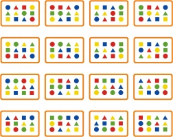 Kinderen leggen de blokjes zodat ze overeenkomen met het voorbeeld op de kaart. Ze beginnen met eenvoudigere kleurpatronen en gaan geleidelijk over naar geometrische vormen.