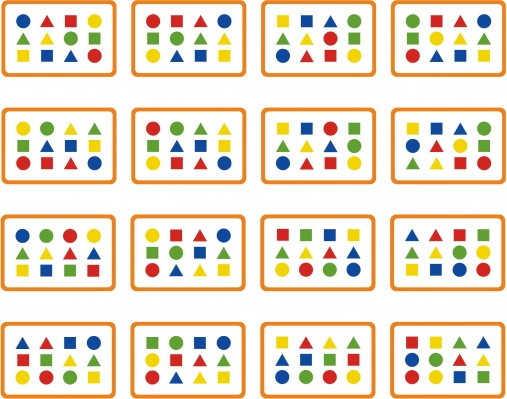 - 12 dubbelzijdige blokjes – kleuren aan de ene kant, vormen aan de andere