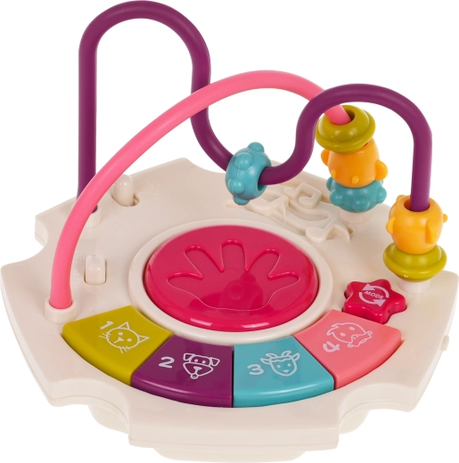 Dankzij licht- en geluidseffecten (melodieën, trommel, dierengeluiden, rammelen en klikken bij het bewegen van elementen) prikkelt het speelgoed de zintuigen en motiveert het om steeds opnieuw te ontdekken. Kinderen trainen fijne motoriek, logisch denken, herkennen van vormen, kleuren en cijfers en tijdsbesef. Ideaal cadeau dat meegroeit met het kind en talloze speelmogelijkheden biedt.