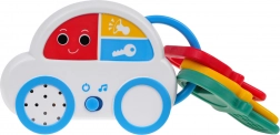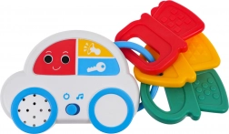 Het interactieve autootje met sleutels biedt kinderen leuk speelplezier dankzij geluidseffecten, zoals het starten van de motor of een claxon, en introduceert 18 melodieën. Dankzij de verschillende functies kunnen de sleutels ook dienen als bijtring, wat vooral nuttig is tijdens het doorkomen van tandjes.