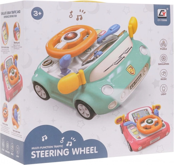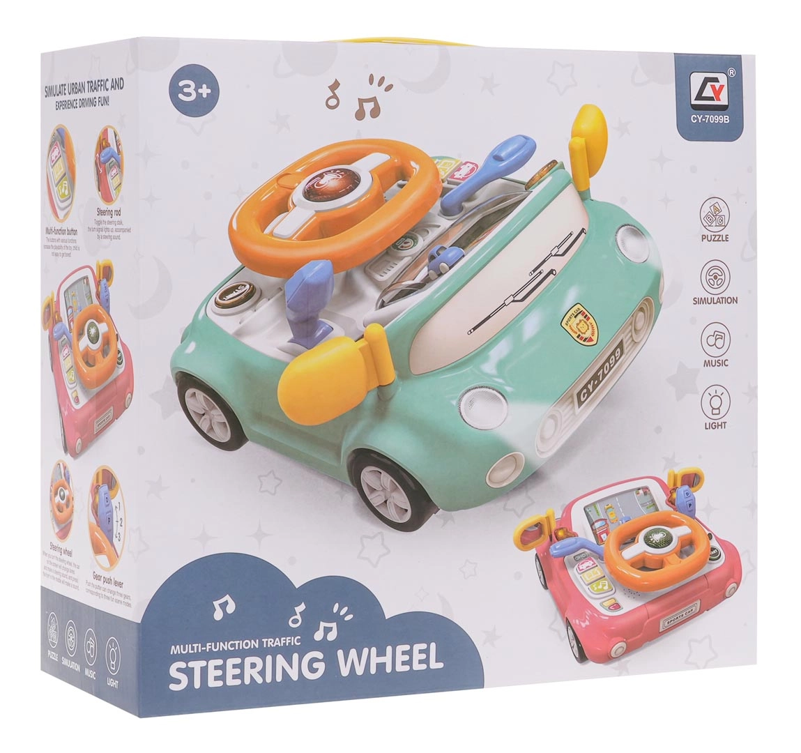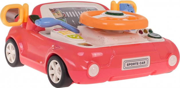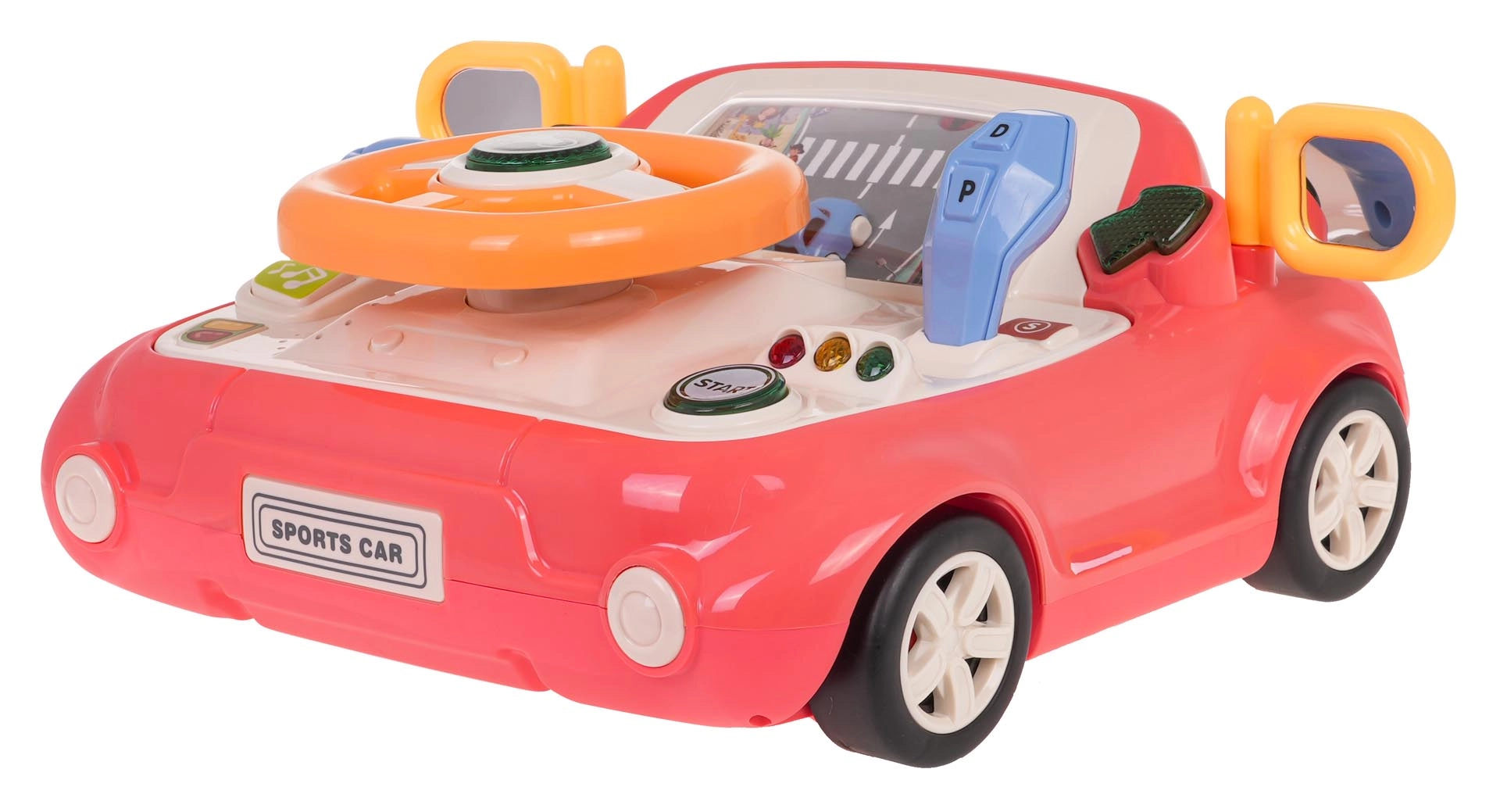 Leuk interactief speelgoed in de vorm van een autootje voor kinderen vanaf 3 jaar. Biedt licht- en geluidseffecten, een draaibaar stuur met verlichte claxon, een versnellingspook, richtingaanwijzers en een scherm met een bewegende weg en auto. Stevige uitvoering van hoogwaardige kunststof, zonder scherpe randen, met vier zuignappen voor stabiliteit en het spelenderwijs leren van verkeersregels.