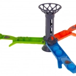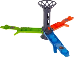 Het spel Wie Eerst laat maximaal drie spelers tegen elkaar strijden. Elke speler kiest zijn startpositie (groen, blauw, oranje) en krijgt drie knikkers in de bijpassende kleur. Het doel is om de knikkers af te schieten, de toren te raken en zo snel mogelijk al je knikkers op de speelbasis te plaatsen.