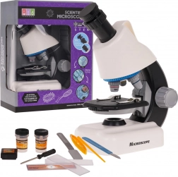 Beleef de wonderen van microscopie met onze witte microscoop, ideaal voor zowel educatieve als recreatieve doeleinden. Deze microscoop biedt niet alleen een geweldige vergroting tot 1200x, maar bevat ook verschillende accessoires die het verkennen van monsters vergemakkelijken.