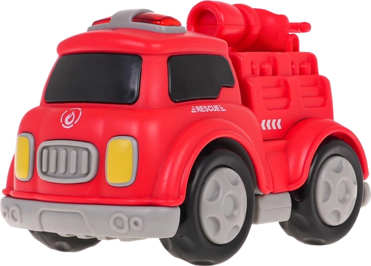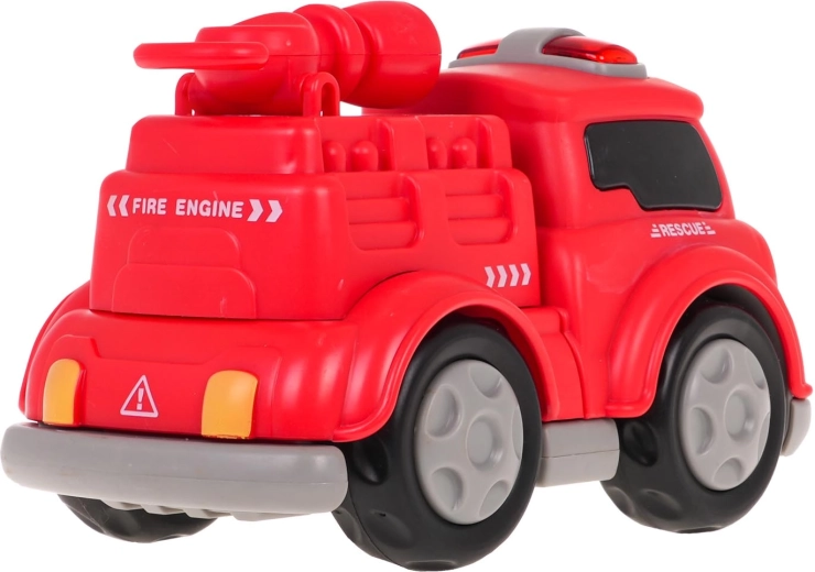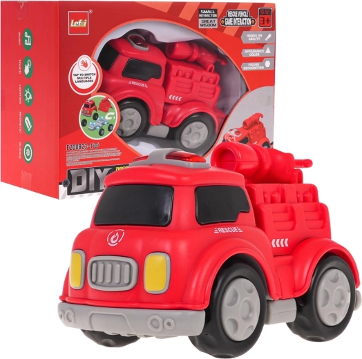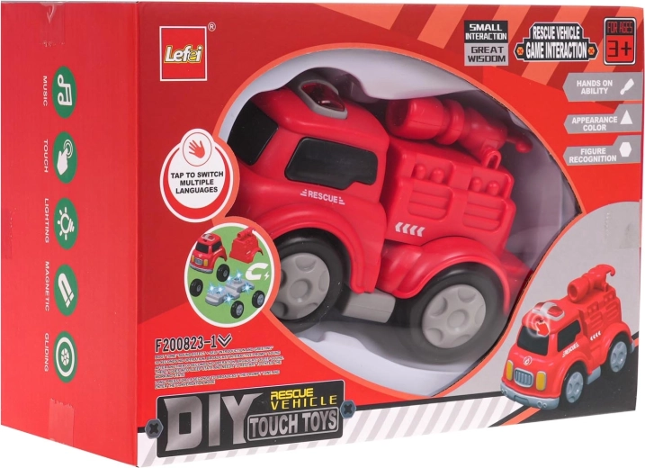 Interactieve brandweerauto met magneten voor kinderen vanaf 3 jaar. De auto is gemaakt van de hoogste kwaliteit kunststof en heeft geluid- en lichteffecten. Door op het bovenste deel van het voertuig te drukken hoor je vrolijke liedjes, brandweersirenes of kindergelach. De geluidseffecten worden vergezeld door gekleurde lampjes op het dak van het voertuig. Het voertuig kan zonder gereedschap uit elkaar worden gehaald. De afzonderlijke onderdelen zijn voorzien van magneten, zodat ze gemakkelijk en stevig aan elkaar kunnen worden bevestigd. Het speelgoed werkt op 3 x AG13-batterijen (meegeleverd).