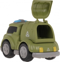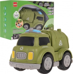 De interactieve vuilniswagen brengt kinderen plezier en nieuwe ontdekkingen. Hij is gemaakt van hoogwaardige kunststof en is uitgerust met geluidseffecten, zoals rijgeluiden, vrolijke melodieën en kinderlach. De lichteffecten omvatten knipperende, kleurrijke lampjes op het dak van het voertuig.