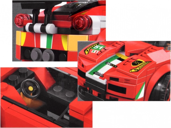 De verpakking bevat ook stickers die het model een authentieke en aantrekkelijke look geven. De gebouwde auto heeft afmetingen van ongeveer 4,5 cm hoog, 5,7 cm breed en 14,5 cm lang.