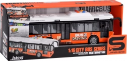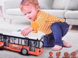 Op het dak van de bus bevinden zich vier knoppen voor geluids- en lichtfuncties: gele knop - geluid van stoppen en deuren openen, blauwe knop - geluid van motor starten, rode knop - claxon, oranje knop - geluid van achteruitrijden. Geluiden worden begeleid door kleurrijke knipperende lichten in de cabine van de bus. Het speelgoed wordt gevoed door 3 x AG13-batterijen (inbegrepen).
