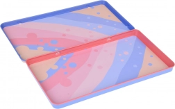 Een kleurrijk kunststof dienblad met deksel zorgt voor eenvoudige organisatie en veilige opslag van het spel.