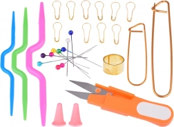 De set bevat alle accessoires die nodig zijn voor haken - meetlint, veilige schaar, naalden, spelden, centimeters, vingerhoeden en nog veel meer, zodat je met een professionele touch kunt creëren.