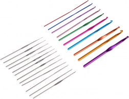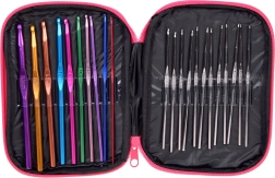 Maak kennis met 22 haaknaalden in maten van 0,6 mm tot 6,5 mm. Metalen haaknaalden zijn duurzaam en gemakkelijk te gebruiken, terwijl de verschillende kleuren een snelle herkenning van de maat mogelijk maken.
