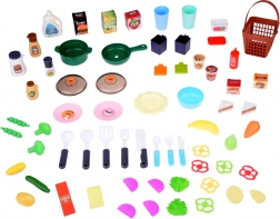 - Pan, koekenpan, borden, kom, bekers, bakjes