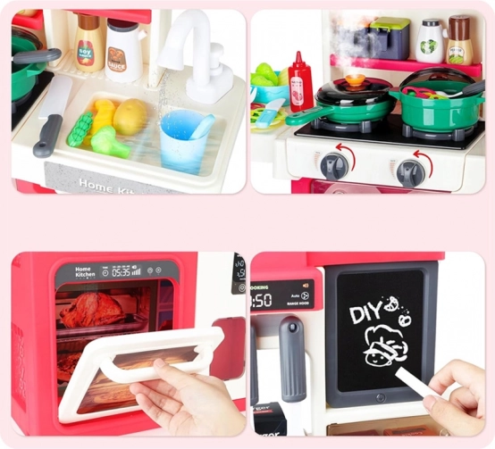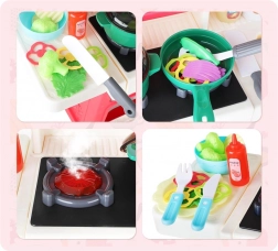 Interactieve keuken voor kinderen in pasteltinten is de ideale keuze voor elke kleine kok. Biedt volop speelplezier met veel bewegende en openende onderdelen die de aandacht van kinderen trekken en een veilig alternatief vormen voor een echte keuken.