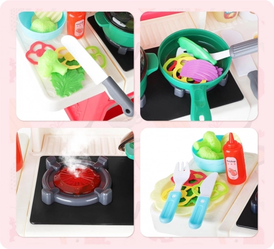 • Branders: Twee verlichte branders die bij het draaien rood oplichten en kookgeluiden maken. Mogelijkheid om water toe te voegen voor stoomsimulatie.
