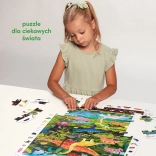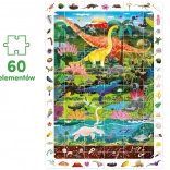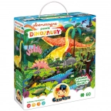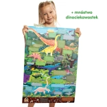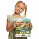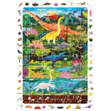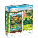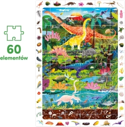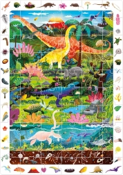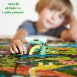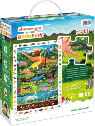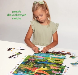 De Ontdekkingspuzzel Dinosaurussen bevat 60 stukjes die samen een betoverend dinosaurusbeeld vormen. De illustratie is omringd door een kader vol details die kinderen graag ontdekken en vergelijken met het plaatje. In de doos zit ook een educatieve poster met leuke weetjes over de wereld van dinosaurussen.