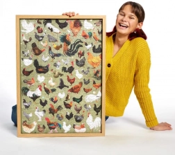 Ontdek de charme van een geïllustreerd motief met kippen van diverse rassen. Dankzij de 1000 stukjes wacht je een prettige uitdaging die geduld en aandacht bevordert, terwijl je tegelijk kunt genieten van weldadige ontspanning na een drukke dag. Perfect voor samen of solo puzzelen.