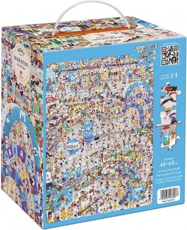 Deze editie biedt een levendig marathonthema – een menigte lopers, aanmoedigend publiek en gebeurtenissen op het parcours. Met 1000 stukjes en tal van kleine scènes behoort het tot de meer uitdagende puzzels, perfect voor iedereen die van detail en uitdagingen houdt. Na het leggen krijg je een afbeelding van 48 × 68 cm, klaar om tentoon te stellen of in te lijsten.