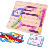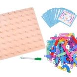 Ontdek creatief spel dat de fantasie en vaardigheden van kinderen ontwikkelt: een houten Montessori-mozaïek met een dubbelzijdig bord en gekleurde stokjes. Kinderen kunnen volgens voorbeelden of hun eigen fantasie vormen leggen op een houten bord met pinnetjes en aan de andere kant schrijven en tekenen oefenen met een uitwisbare stift. Dit speelgoed stimuleert fijne motoriek, coördinatie, logisch denken en creativiteit – en zorgt voor uren speelplezier.