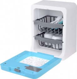 Deze speelgoedvaatwasser brengt realistische elementen in het spel: van het ruisen van water en het geluid van spoelen/steriliseren tot de eindsignalering van het programma. Dankzij het touchpaneel kiezen kleine helpers eenvoudig de modus en tijd. Het openende deurtje en de manden op twee niveaus maken het inladen van bordjes, bekers en bestek makkelijk.