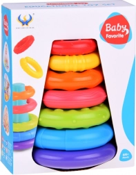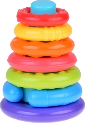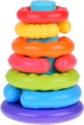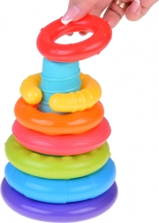 De kleurrijke sensorische piramide met zes ringen is ideaal voor kinderen vanaf 6 maanden. Ondersteunt de ontwikkeling van de fijne motoriek, oog-handcoördinatie en zintuiglijke waarneming dankzij verschillende texturen en kleuren. De zachte plastic ringen zijn gemakkelijk vast te pakken en te stapelen, waardoor vaardigheden en nieuwsgierigheid spelenderwijs worden ontwikkeld.