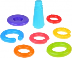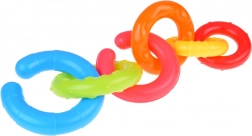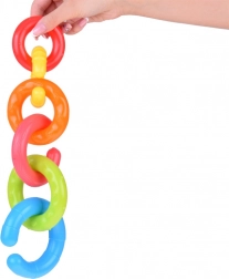 Elke ring heeft een ander oppervlak en een andere kleur, wat de tastzin, visuele aandacht en nieuwsgierigheid van het kind stimuleert.