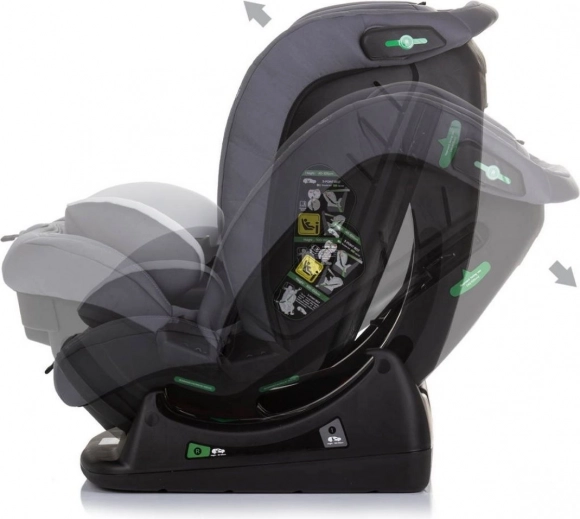 Autostoel Chipolino AVIATO i-Size 40–150 cm in grijs. Veiligheid R129, zijbescherming, 5-puntsgordel, verstelbare rugleuning en wasbare hoes. Met en tegen de rijrichting in.